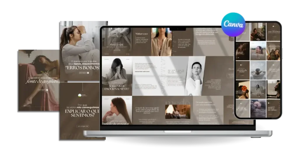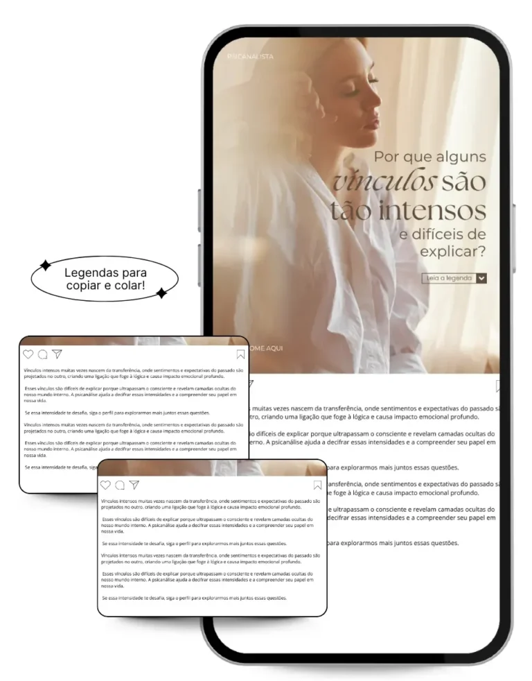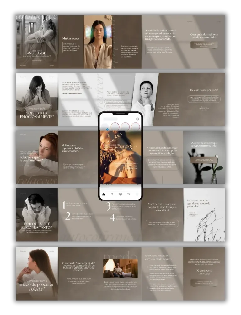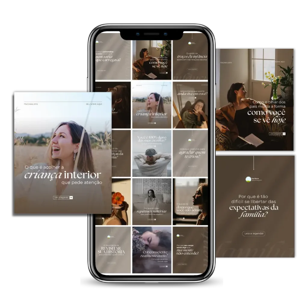Todo conteúdo é 100% editável no Canva gratuito e foi desenvolvido especialmente para você, psicanalista, que deseja ter um perfil que atrai pacientes todos os dias.