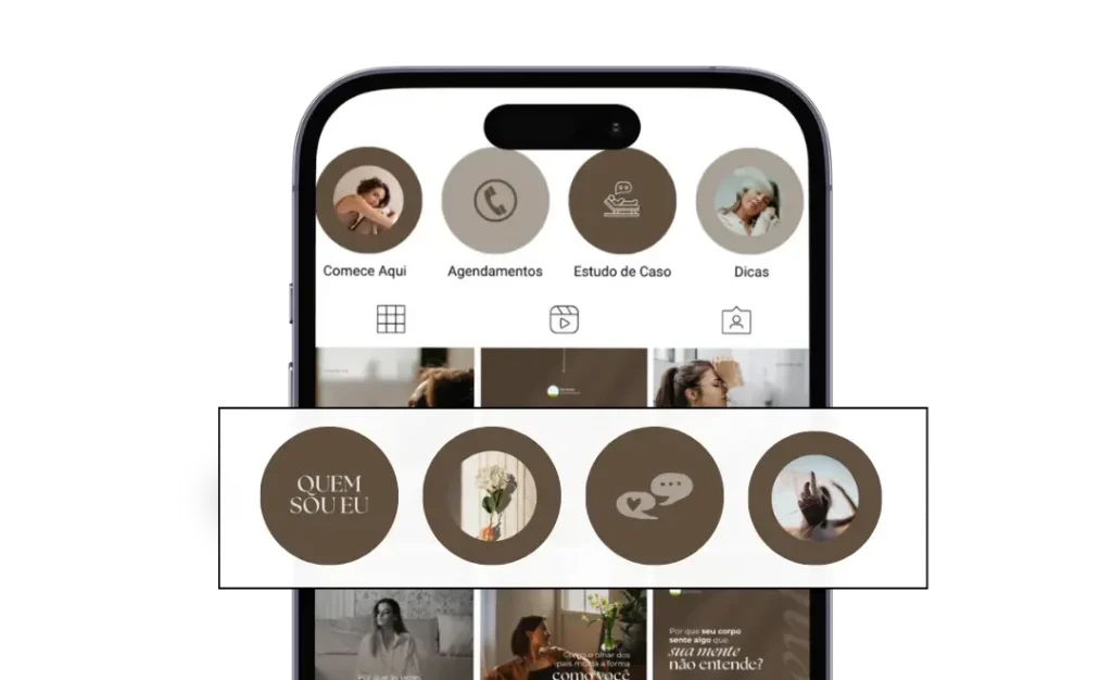 Os destaques são uma das primeiras coisas que os visitantes do seu perfil veem. Com capas personalizadas, você vai organizar seus melhores stories e reforçar sua identidade visual.